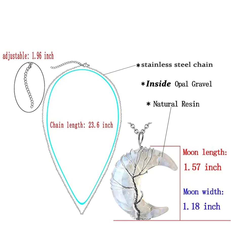 Discover the beauty of our stunning Tree of Life Gravel Moon Pendant, elegantly paired with a durable stainless steel chain. This unique piece is not just a necklace; it is a symbol of connection, growth, and the intricate web of life.